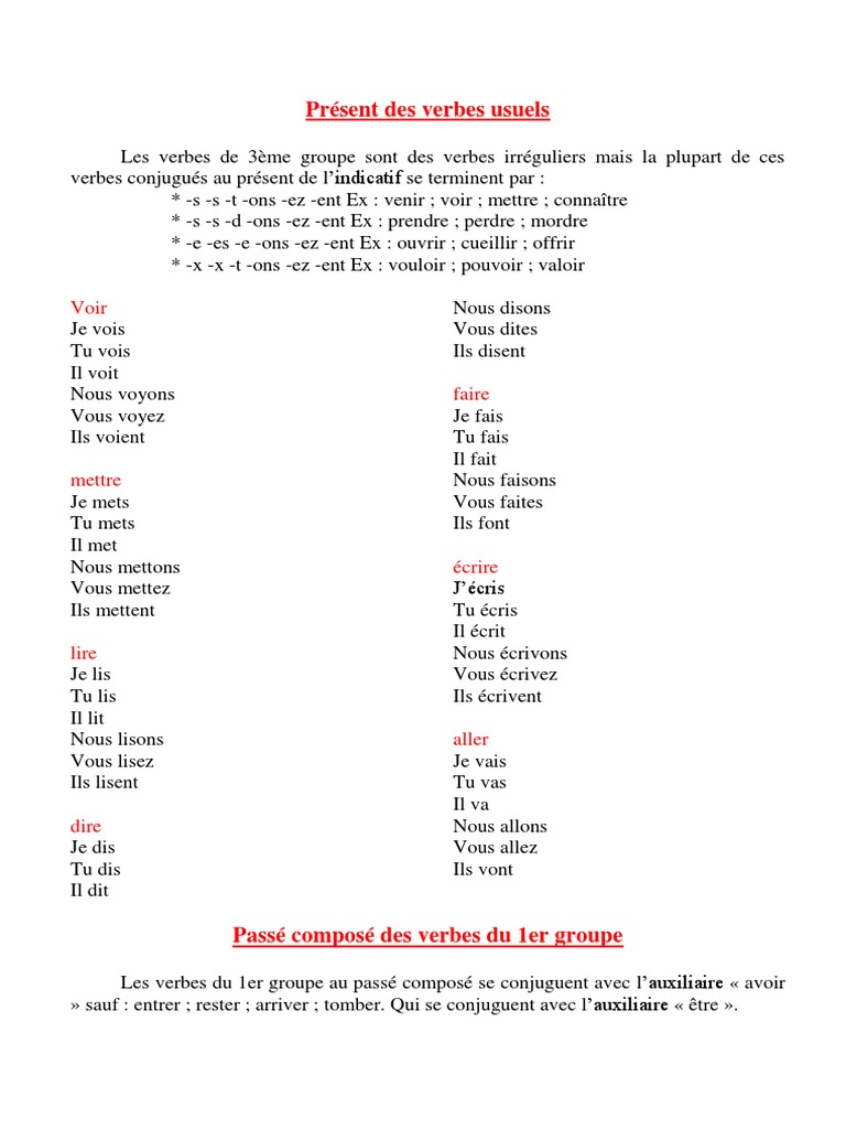 Present Des Verbes Usuels Pdf Verbe Syntaxe